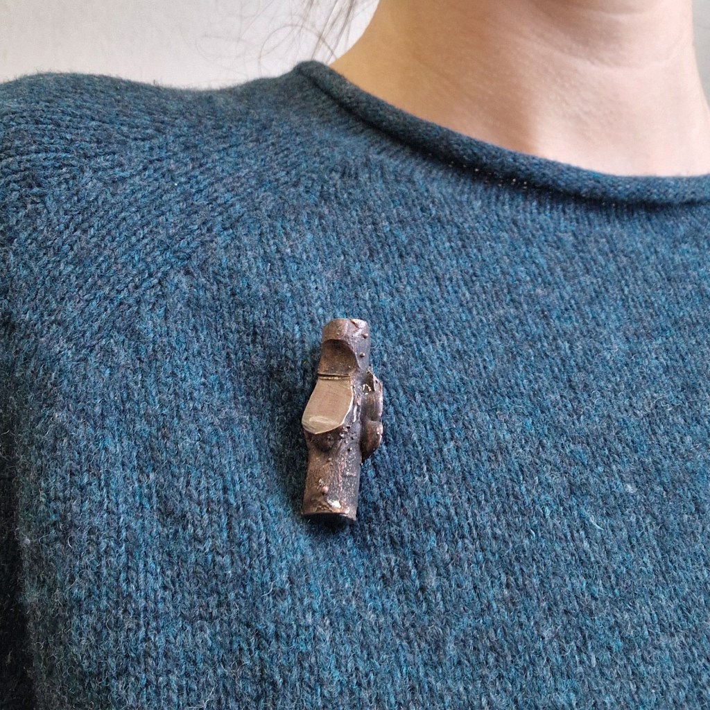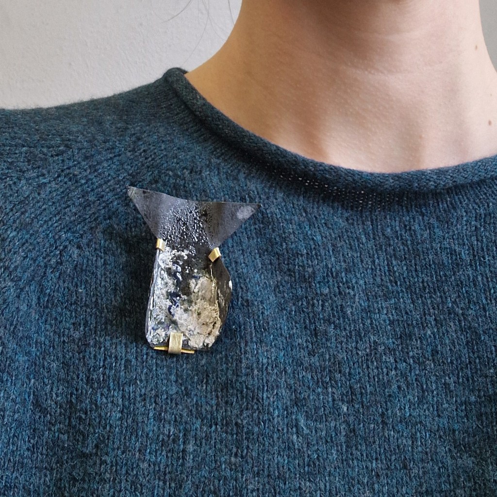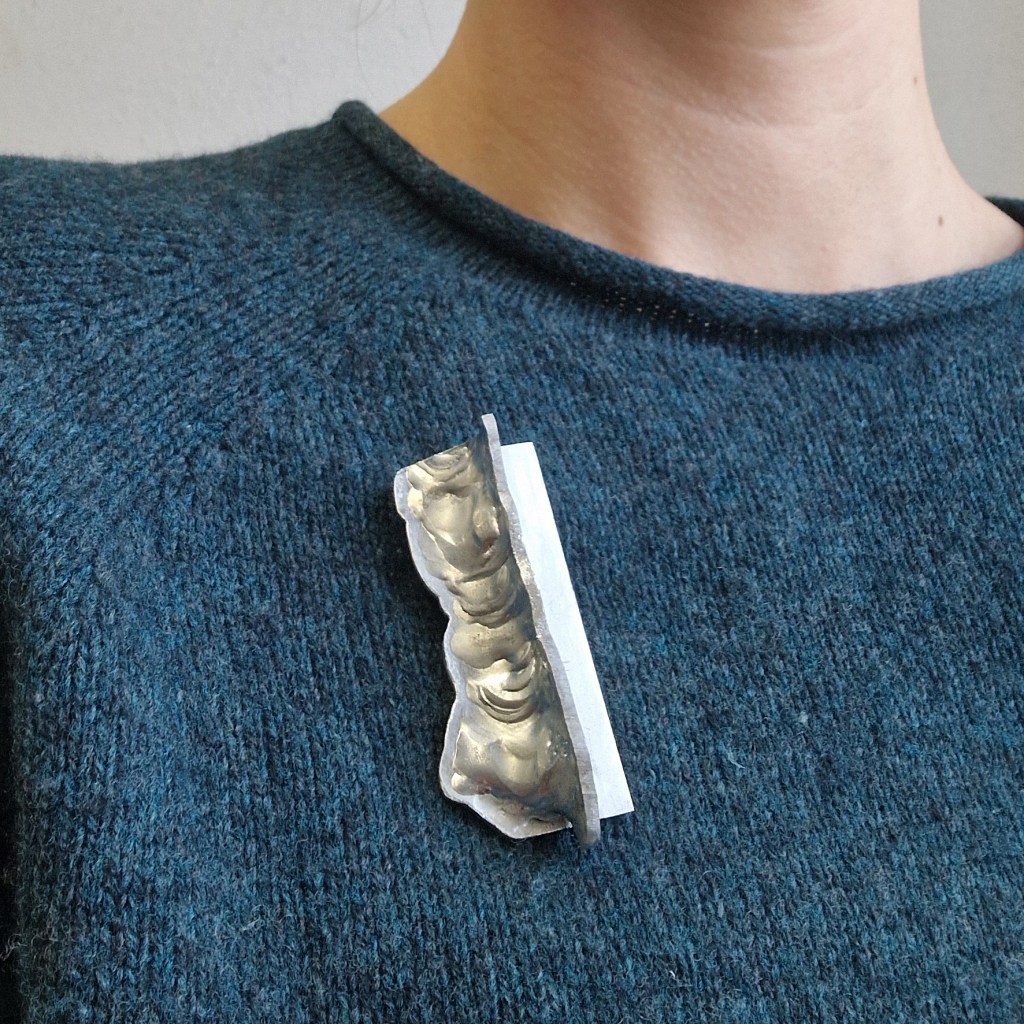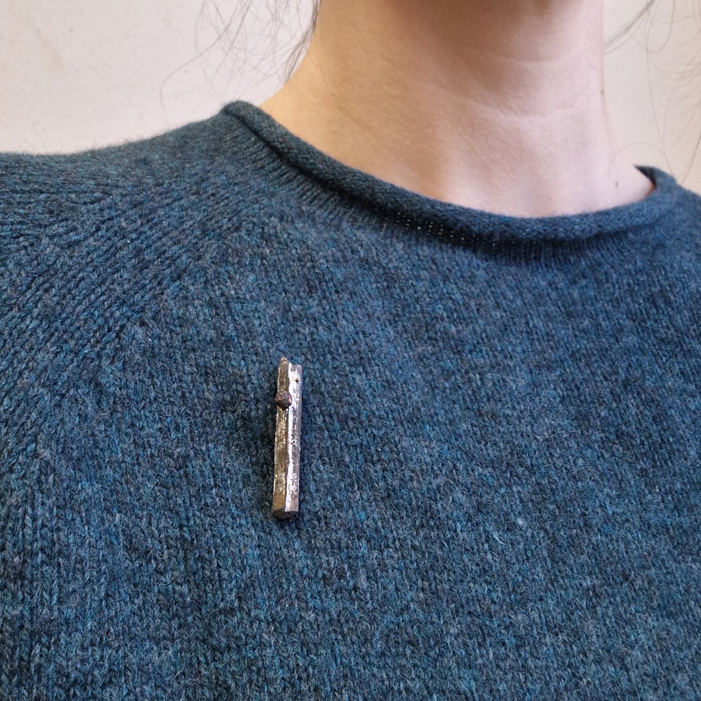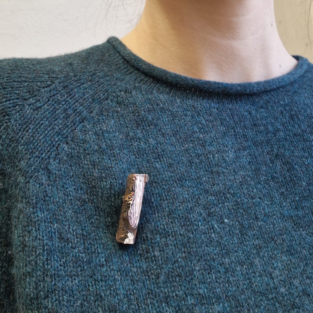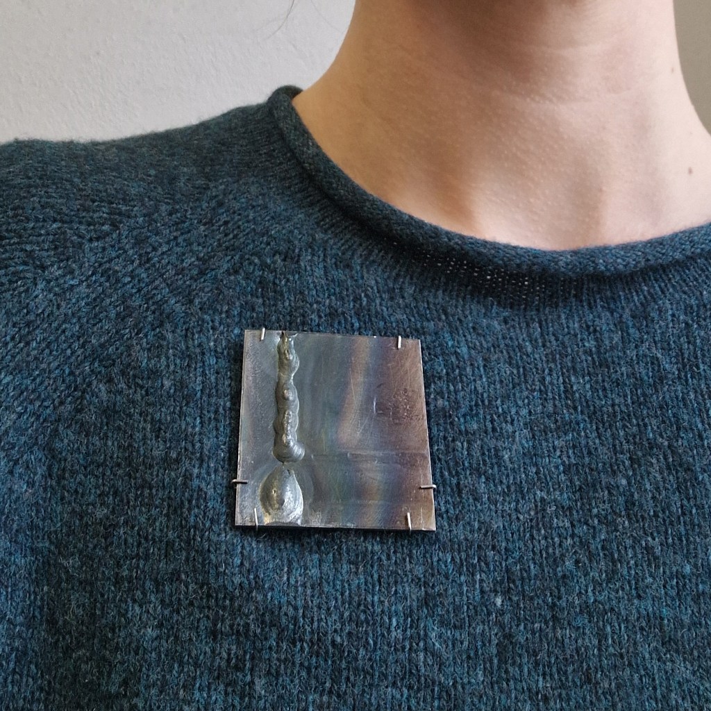 Das Dekanat der Burg Giebichenstein beauftragte mich mit der Herstellung von Schmuck-Geschenken im Wintersemester 2024/25. 41 Absolvent:innen des Fachbereichs Kunst der Burg stellten ihre Anschlussarbeiten im Volkspark Halle unter dem Titel „eingetaucht / aufgetaucht“ aus und bekamen zur Abschlussurkunde jeweils eine Brosche.