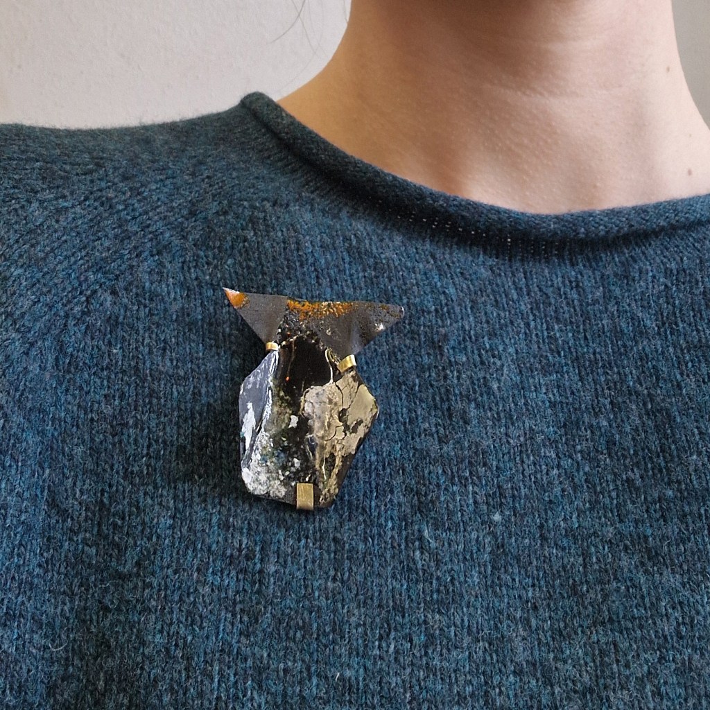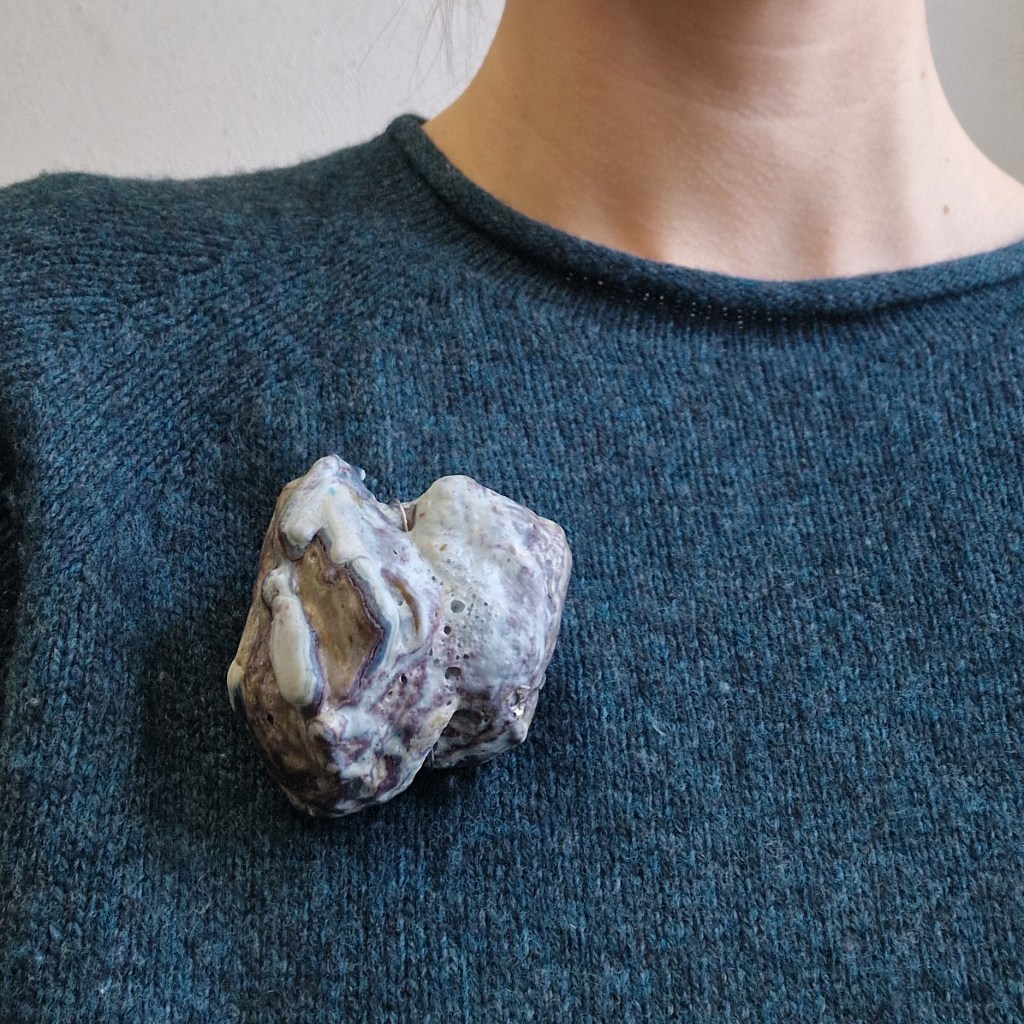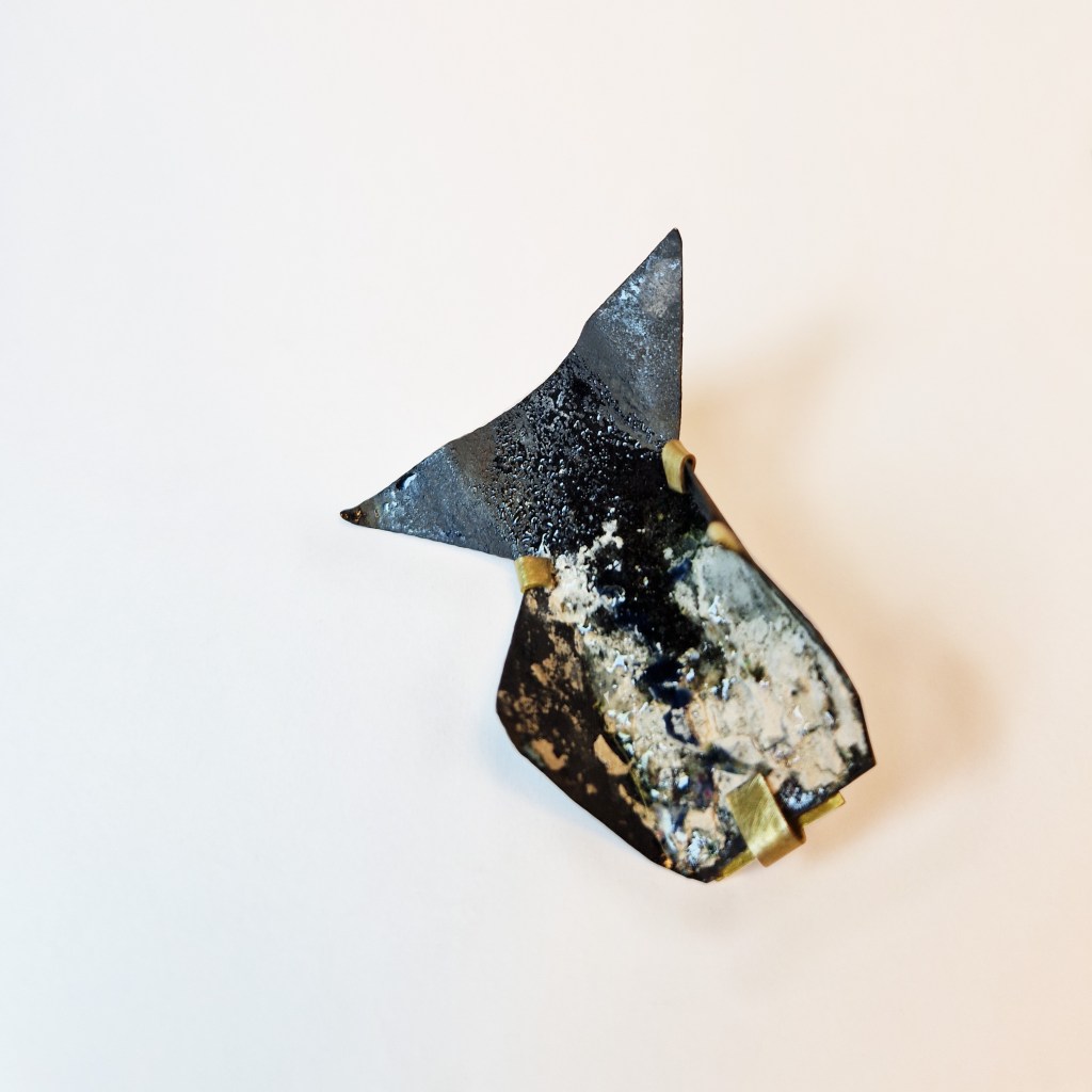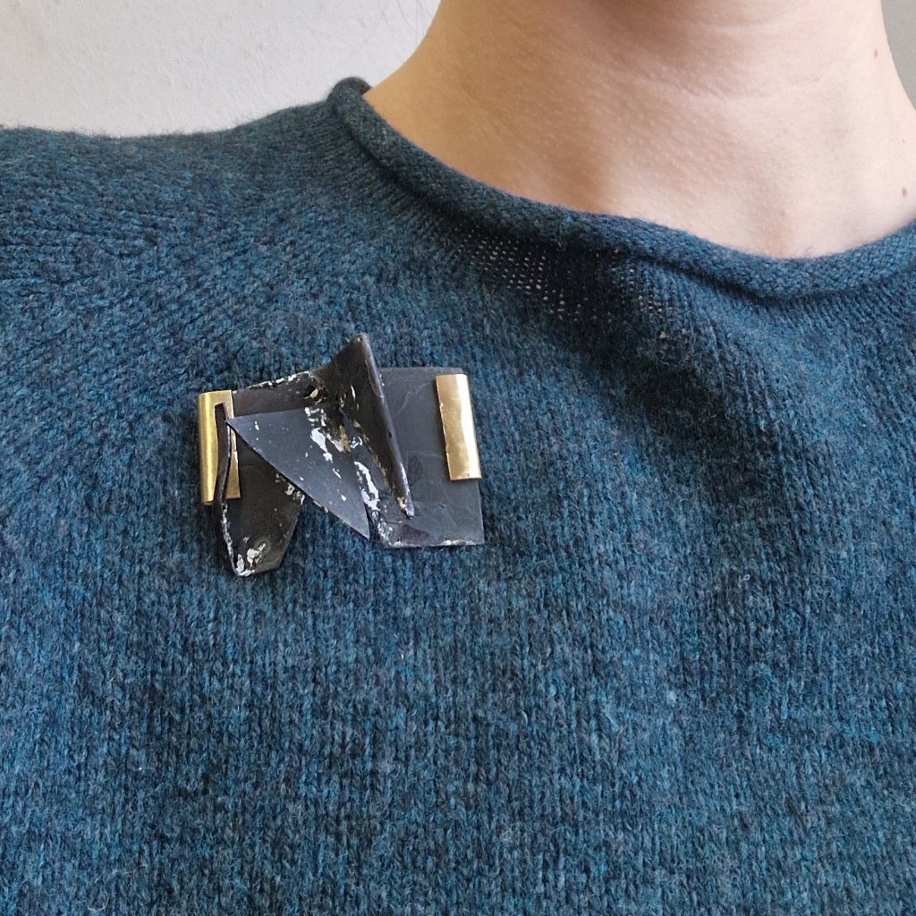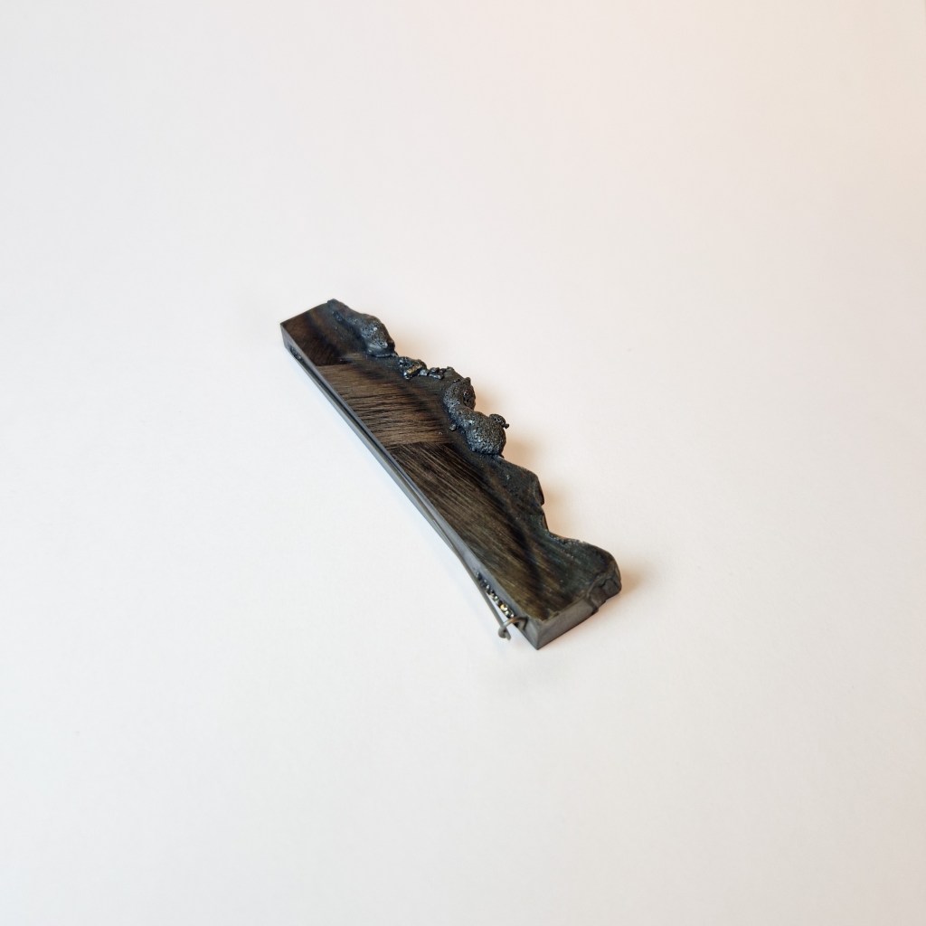 Das Dekanat der Burg Giebichenstein beauftragte mich mit der Herstellung von Schmuck-Geschenken im Wintersemester 2024/25. 41 Absolvent:innen des Fachbereichs Kunst der Burg stellten ihre Anschlussarbeiten im Volkspark Halle unter dem Titel „eingetaucht / aufgetaucht“ aus und bekamen zur Abschlussurkunde jeweils eine Brosche.