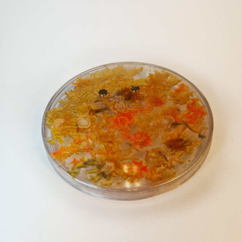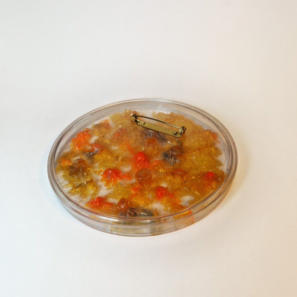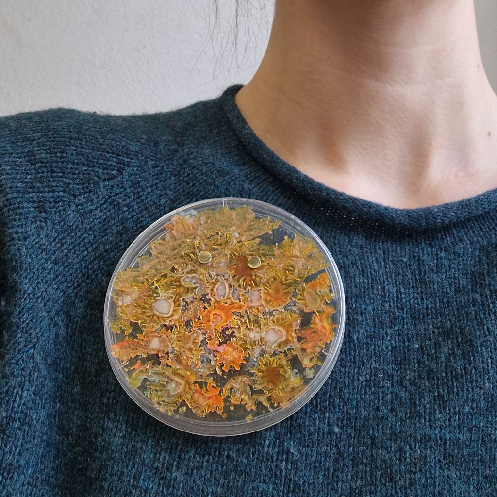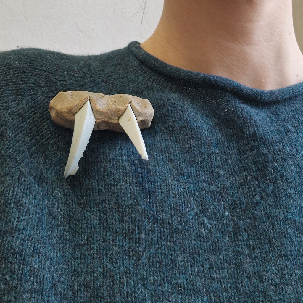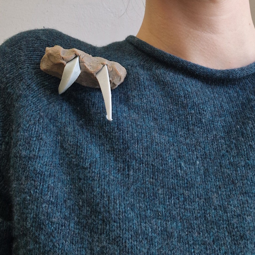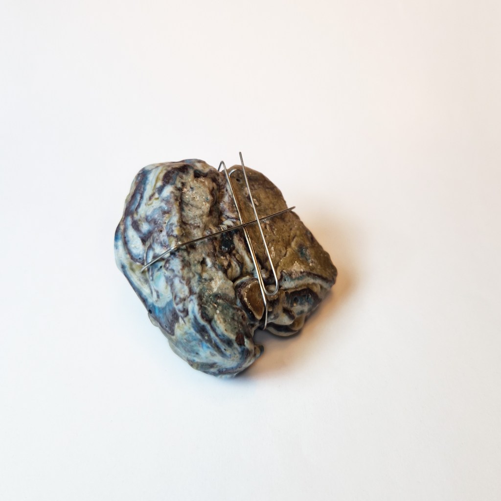 Das Dekanat der Burg Giebichenstein beauftragte mich mit der Herstellung von Schmuck-Geschenken im Wintersemester 2024/25. 41 Absolvent:innen des Fachbereichs Kunst der Burg stellten ihre Anschlussarbeiten im Volkspark Halle unter dem Titel „eingetaucht / aufgetaucht“ aus und bekamen zur Abschlussurkunde jeweils eine Brosche.