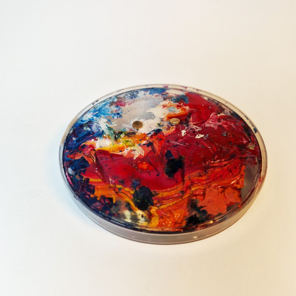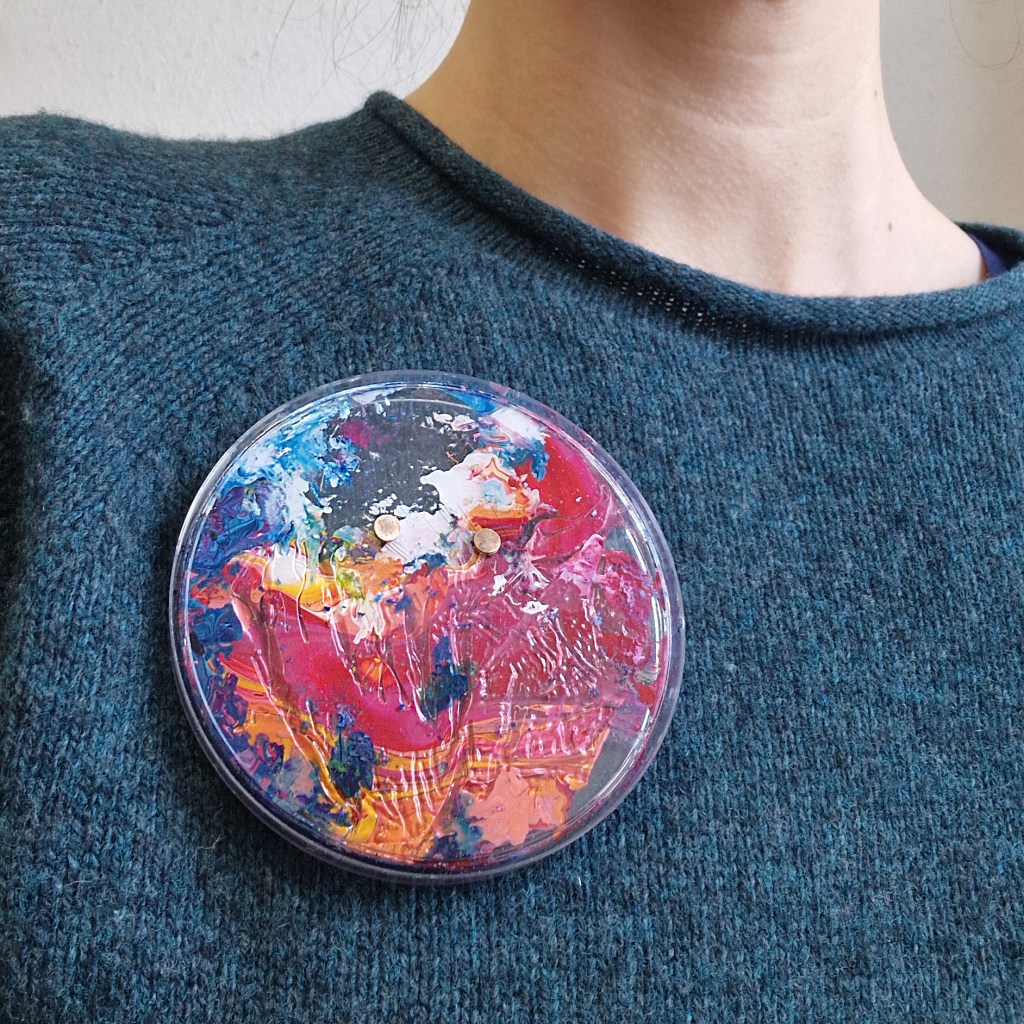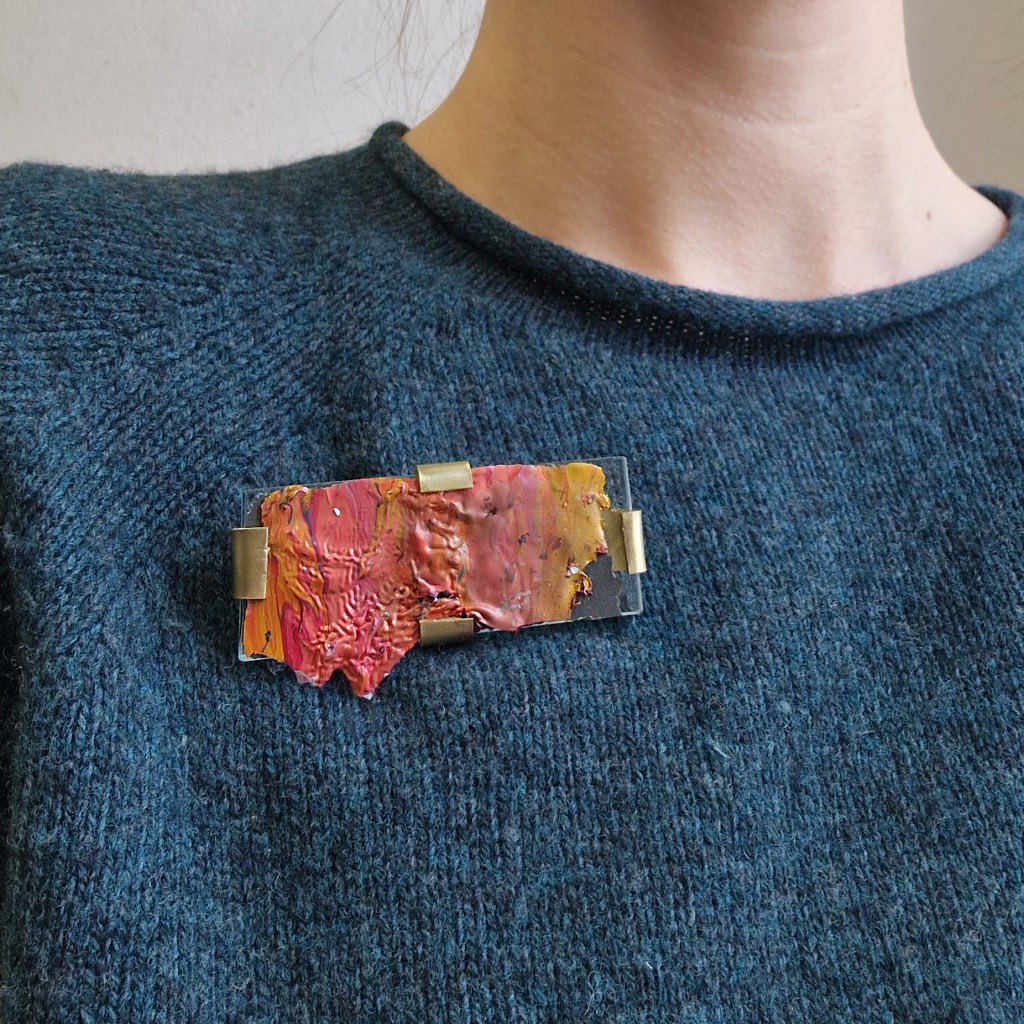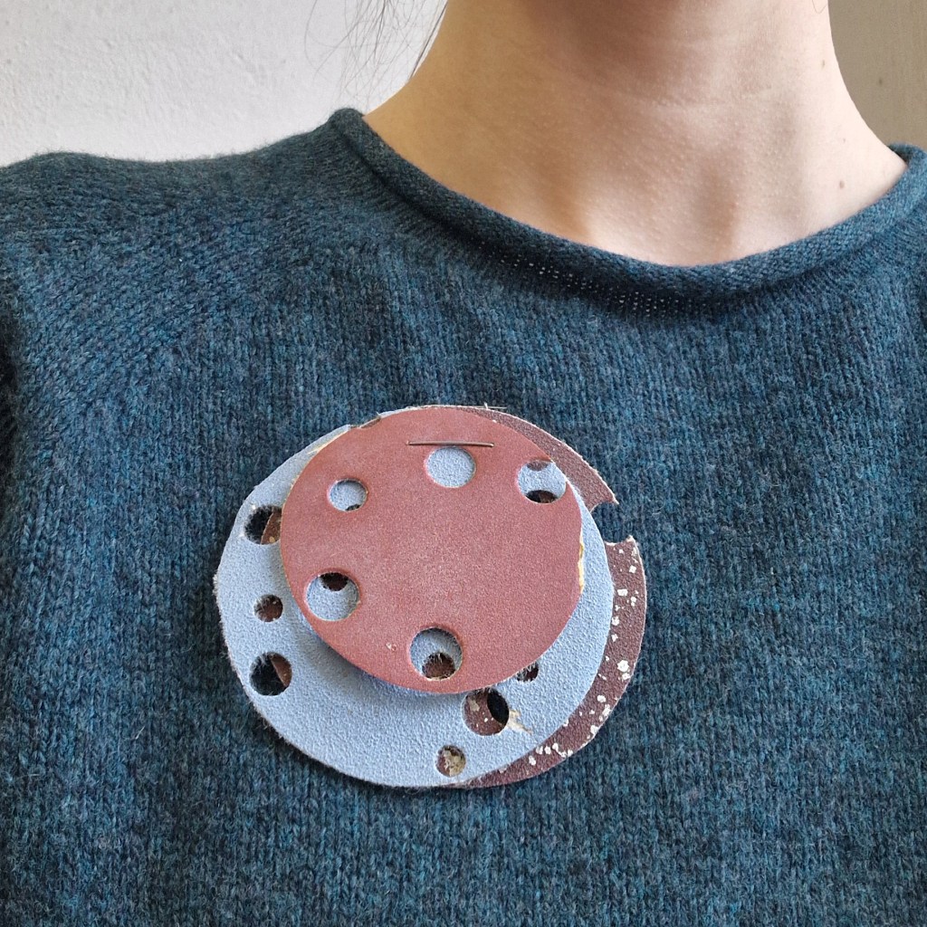 Die Idee kam von meiner „Wolken über ALDI“-Reihe: Dinge, die in den Werkstätten der Kunst an der Burg auftauchen, liegen bleiben, aus dem Materiallager vertraut sind usw. zu Schmuck zu verarbeiten und als Erinnerungsstück mitgeben zu können. Es handelt sich bei den Materialien explizit nicht um Werke von Studierenden. Gleichzeitig sollen möglichst viele Werkstätten und deren Arbeitsprozesse sichtbar gemacht werden.