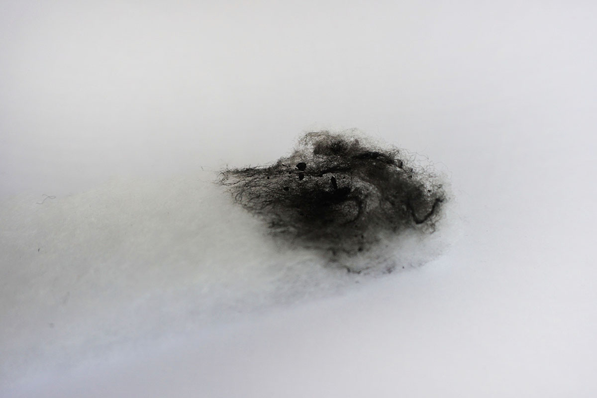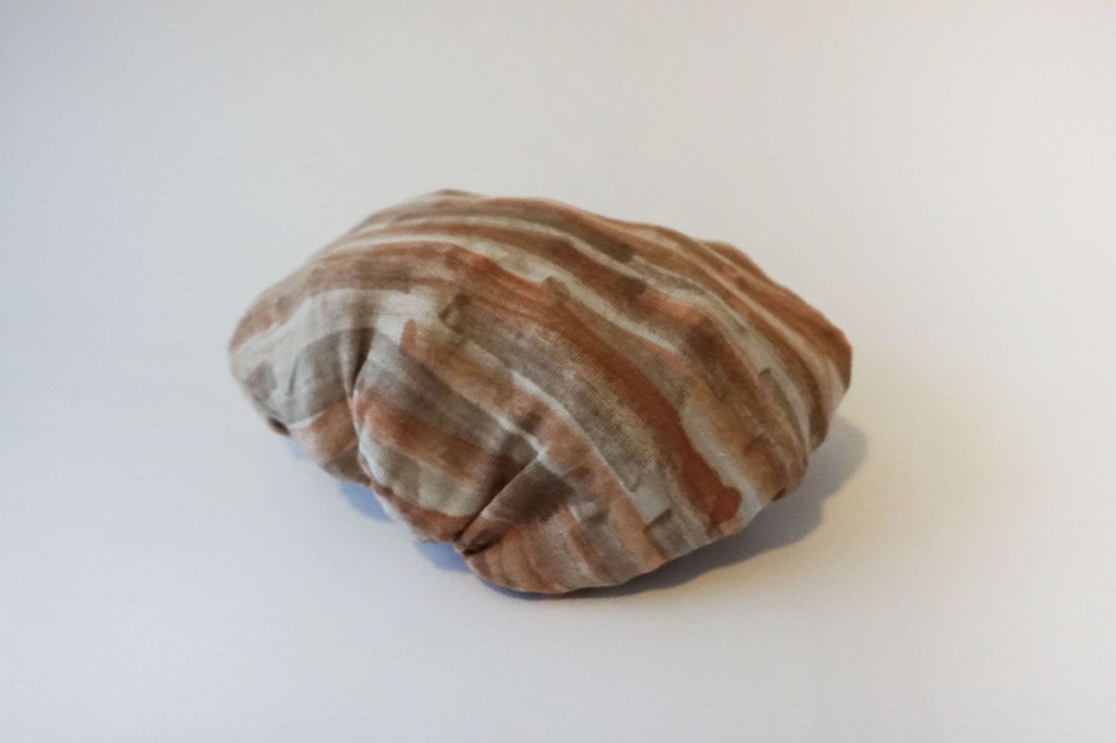 Ich versuche Handlungsabläufe zu materialisieren. Hier ist ein erster Versuch, der sich vor allem mit Haptik beschäftigt: eine mit FIltern beklebte Kunststoffverpackung, verpackt in ein bemaltes Stück Baumwolle.