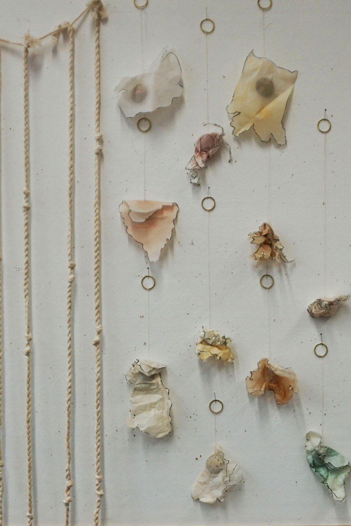 Die vier Objekte stelle ich komplett selbst her. Vom Kordeln der Seile über das Schmieden des kleinen Hangs zum zermahlen der Ziegel, die anschließend in die Objekte gefüllt werden.