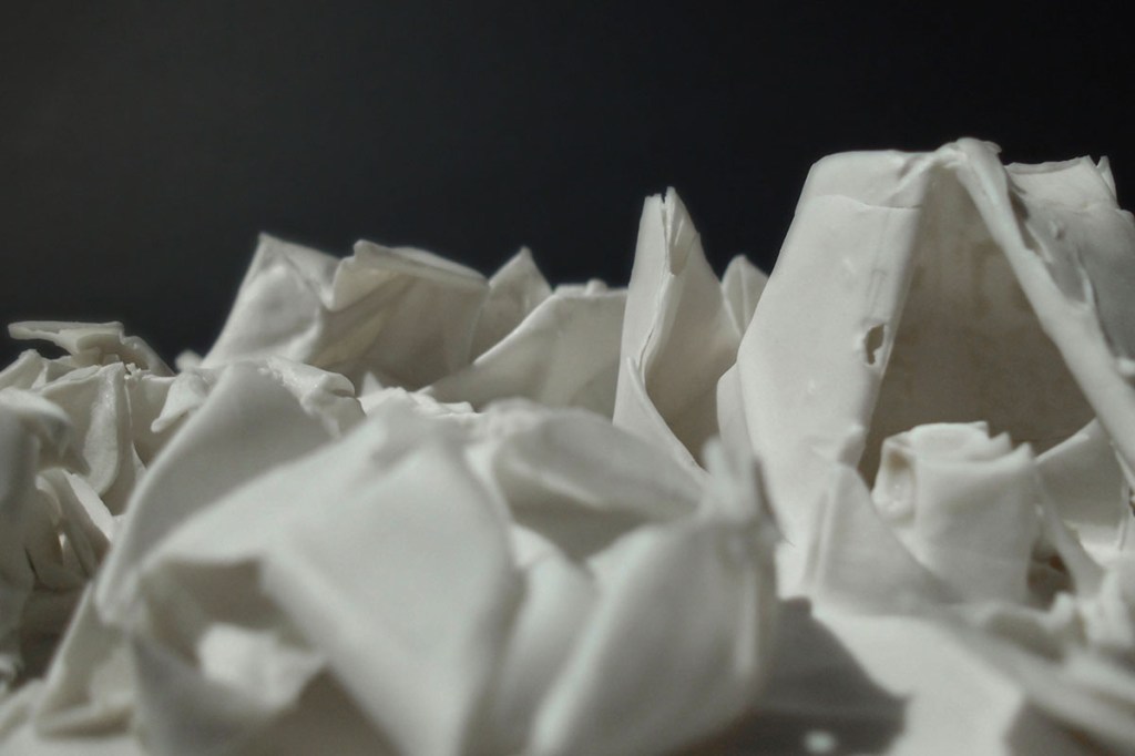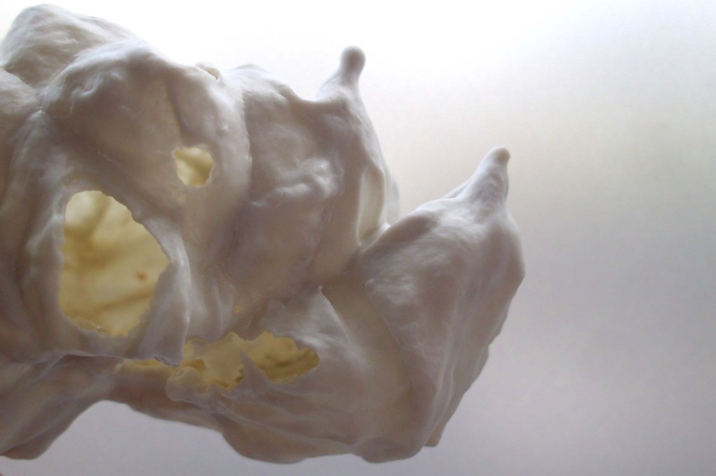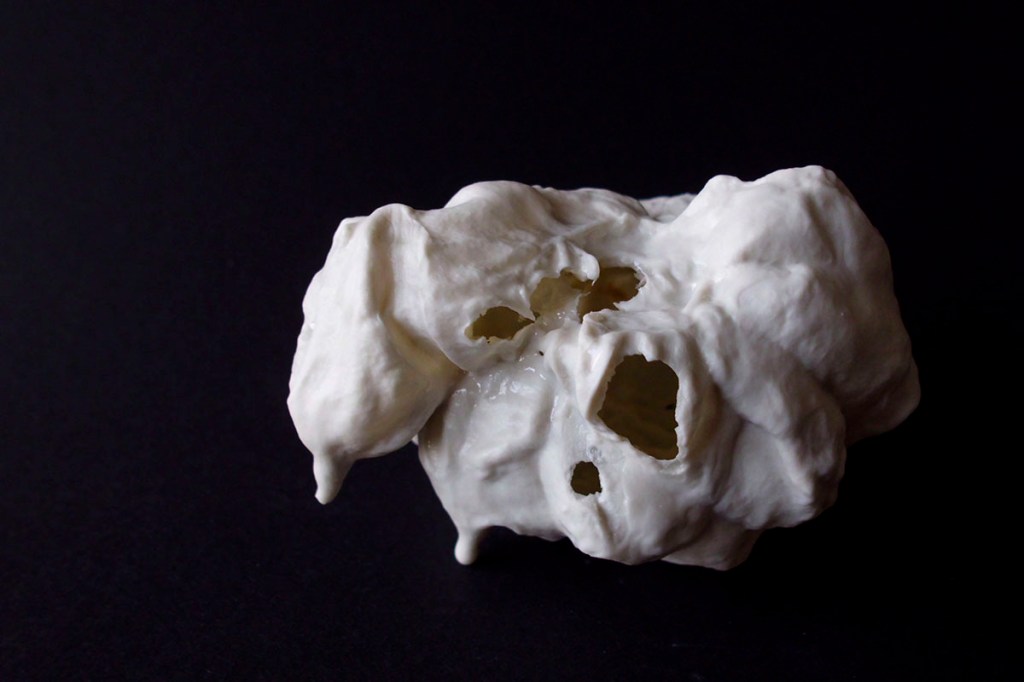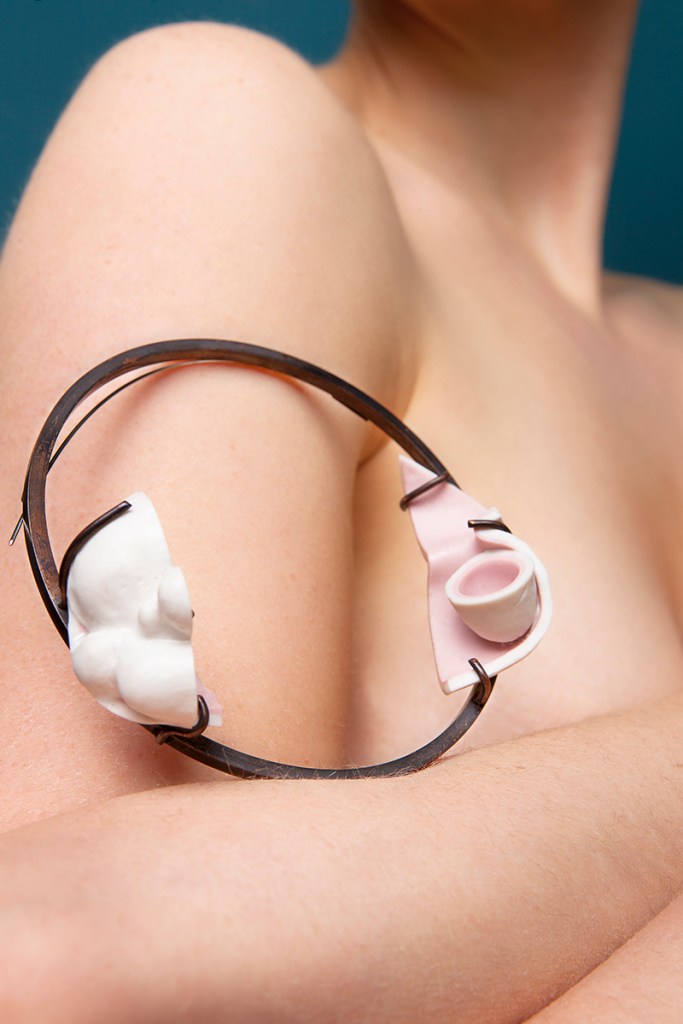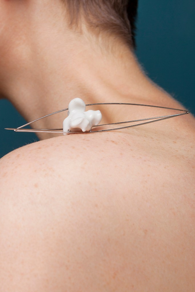 An der Hochschule experimentierte ich über anderthalb Jahre mit dem sehr freinen und eigensinnigen Material. Ich tauchte Papierboote in Flüssigporzellan, brannte Popkorn darin aus und erforschte die Transluzenz. Die Bilder der getragenen Stücke verdanke ich Kevin Momoh.