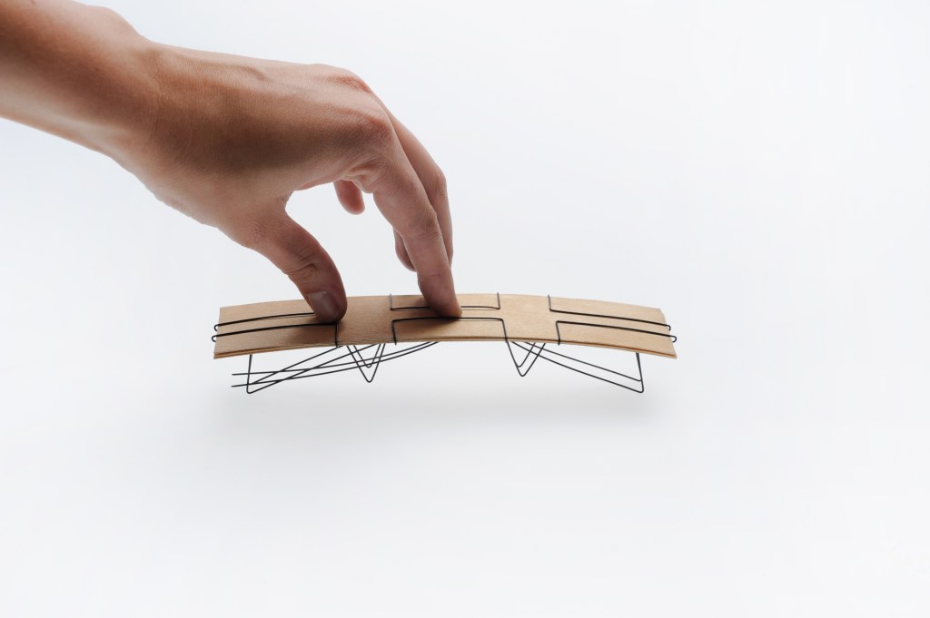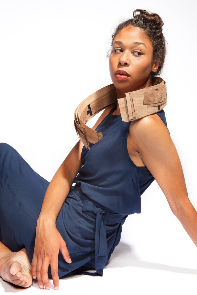 In meiner Bachelorarbeit forsche ich zu der SYNthese von Metall und Holz. Dabei untersuche ich neben Unterschieden der Materialien vor allem deren Gemeinsamkeiten. Eine ist ihre ElasTIZität. Beginnend mit Experimenten und Materialmanipulation entwickelt sich eine Serie aus vier tragbaren Objekten sowie vier Schmuckstücke, die teils stark vergrößert an die Form von Halsreifen erinnern.